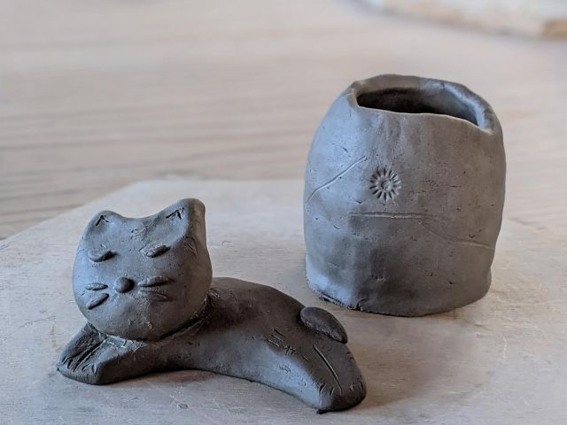 手びねりでつくる器や花入れ、またはお皿や壁掛けなど