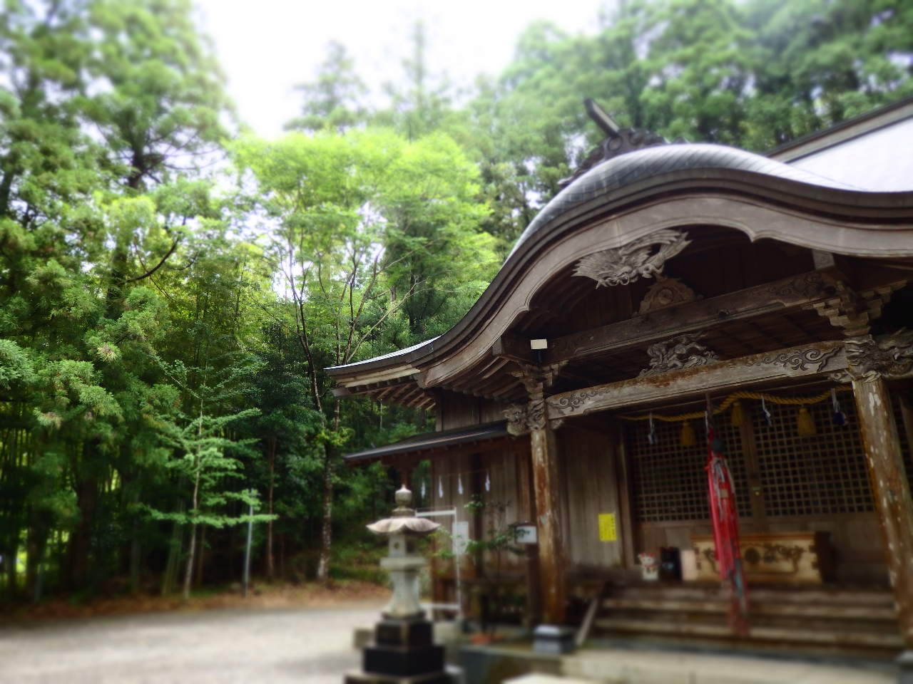 檮原川を望む小さな神社の境内