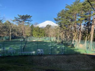 ビレッジ花月園のテニスコートからは、雄大な富士山を見ることができます。