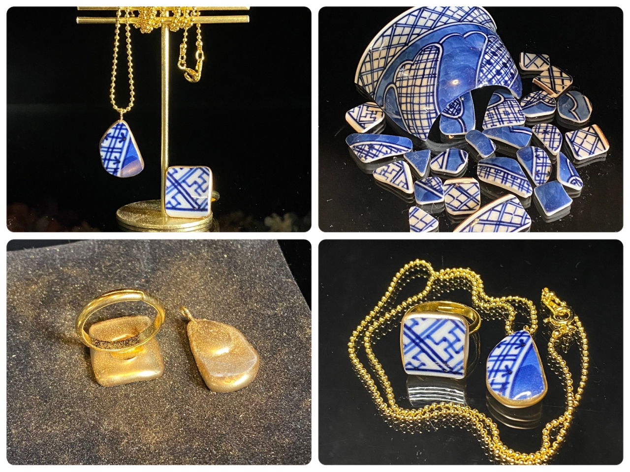 〇京都市内にある金継ぎアクセサリーの体験教室です!〇当日お持ち帰り可能なので、旅の思い出作りにおすすめ〇清水焼モチーフを使って指輪またはネックレスを制作いただきます♪