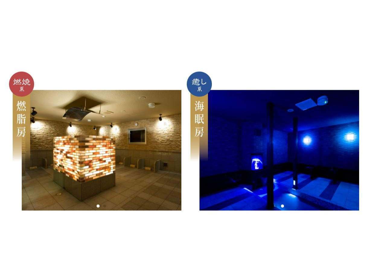 岩盤浴は燃焼系高温岩盤浴「燃脂房」と、癒し系低温岩盤浴「海眠房」の2種類の岩盤浴をご用意しております♪