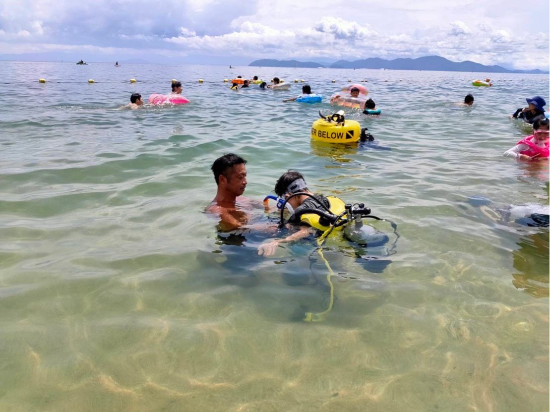 水温変化、透明度、水中生物、音、重さ、水の質感等、海との違いを感じてください。