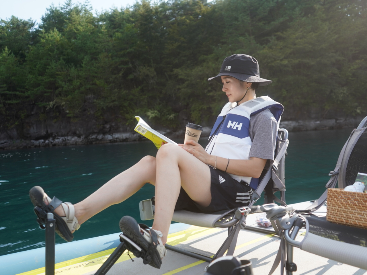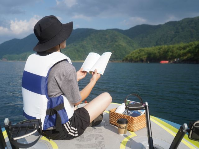 湖上で読む贅沢。富士山と本とコーヒーに包まれる90分。