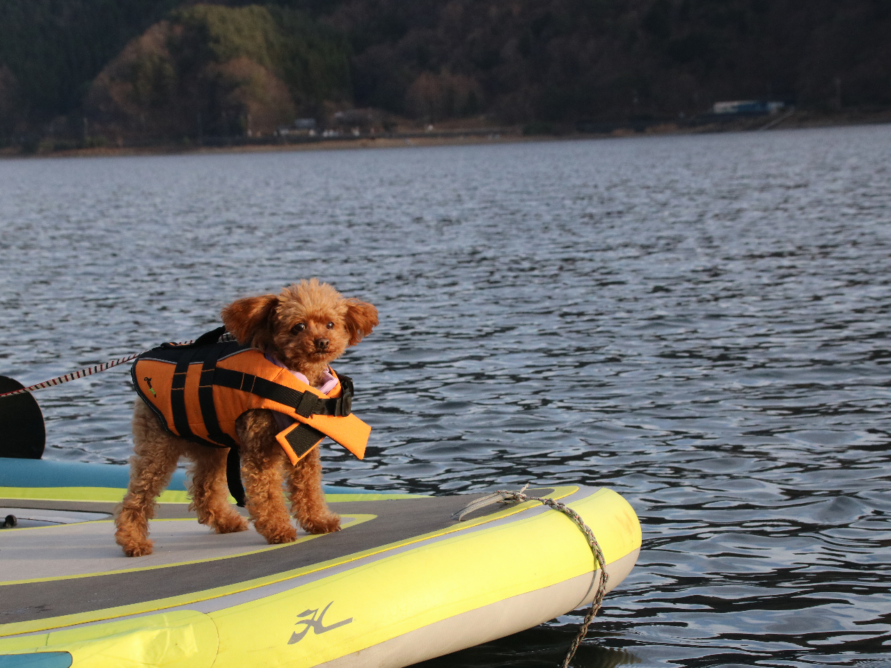 【山梨・西湖】ワンちゃんと一緒に湖上散歩♪安定感のある大型ボードで冬の国立公園を優雅にクルーズ!【ライフジャケットあり】