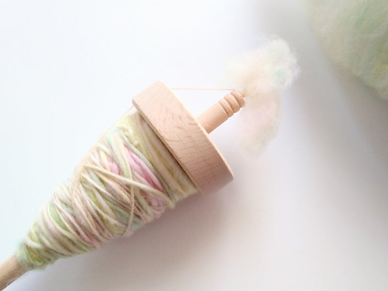 スピンドルというコマを使って毛糸を紡いでみることができます