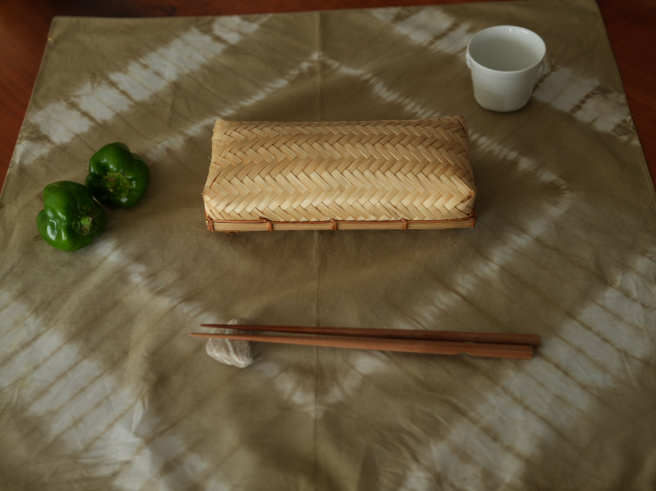 役目を終えたピーマンの葉を用い、自然の循環を映した一点物のミニ風呂敷を染め上げます。植物が生む深い色合いと模様はまさにアート。体験後は新米おにぎりと佃煮で、豊かな秋を味わっていただけます。
