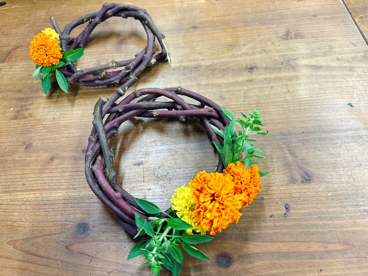 さらに、収穫したサツマイモの蔦を使って「リースづくり」も体験