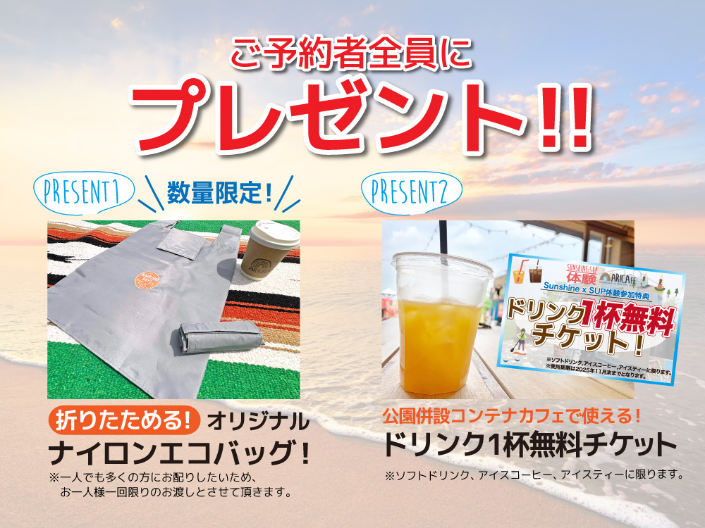 アクセスも便利で環境も抜群で、「サンシャインビーチ」で毎週末様々なSUP定期体験開催中です♪