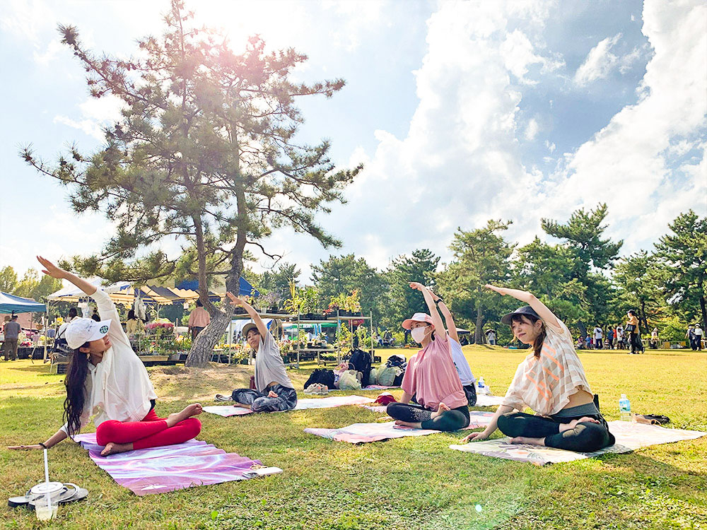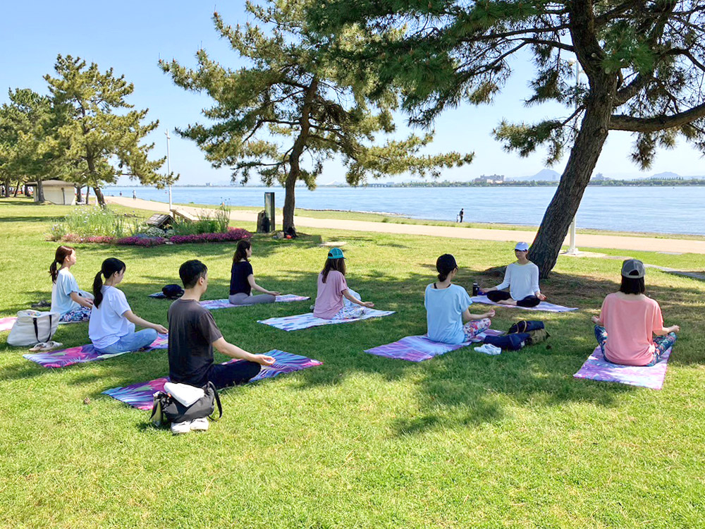 開放感抜群な素敵ローケーションで、自然や大地、琵琶湖を感じながら、先生と一緒に新鮮な空気を身体中にしみ込ませましょう。