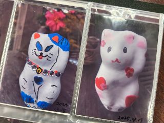 お好きな絵の具・色鉛筆・水性ペン・シールで♪県内で唯一、伝統の技、張り子でできた招き猫の絵付け体験!白衣大観音のふもとで、世界にひとつの福招き猫を制作します。一人でも楽しめる体験プログラムです。