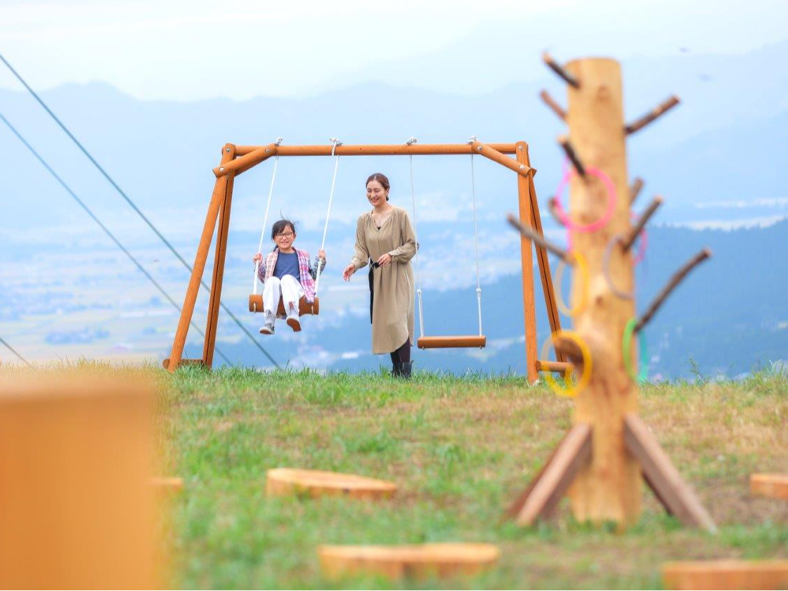 最新鋭のゴンドラで約7分の空中遊覧を楽しみ山頂駅に降り立つと、眼下には魚沼盆地の田園風景と越後の雄大な山々を見渡す絶景が広がります。