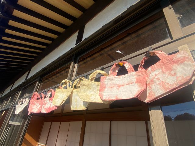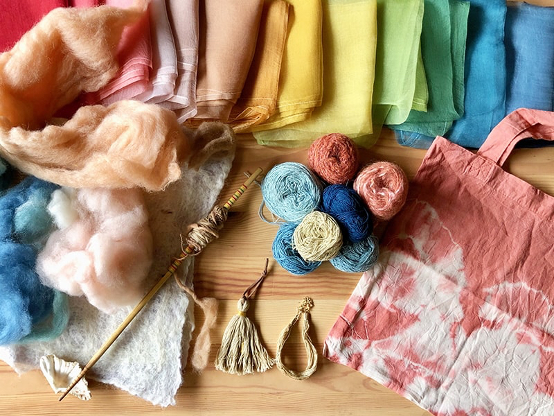 自然素材を染料にして、ストールやバック、ハンカチを煮て染めていきます。柄をつける作業も楽しい!オリジナルの作品をお楽しみください!