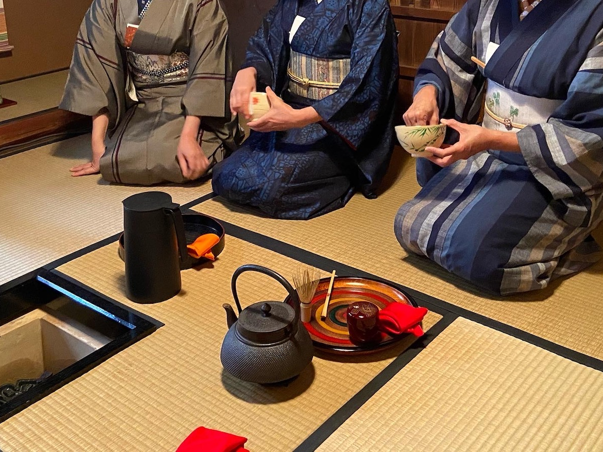 着物を着てお茶室でお茶体験ができます。本格的なお茶室で作法を学びながら、先生のお点前で美味しいお抹茶とお菓子をお召し上がりください。