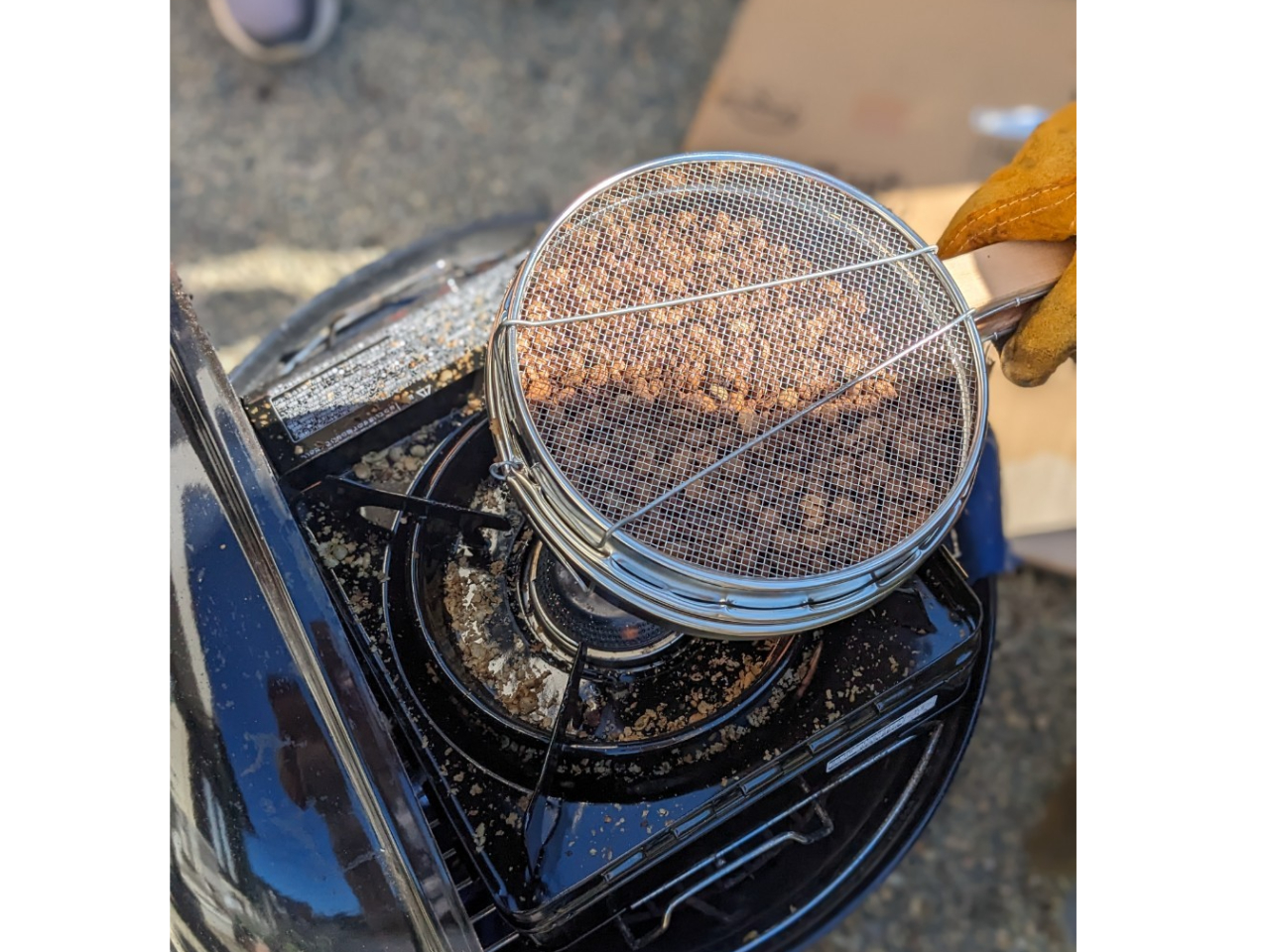 実際に「手網焙煎器」を使用して直火焙煎に挑戦!
