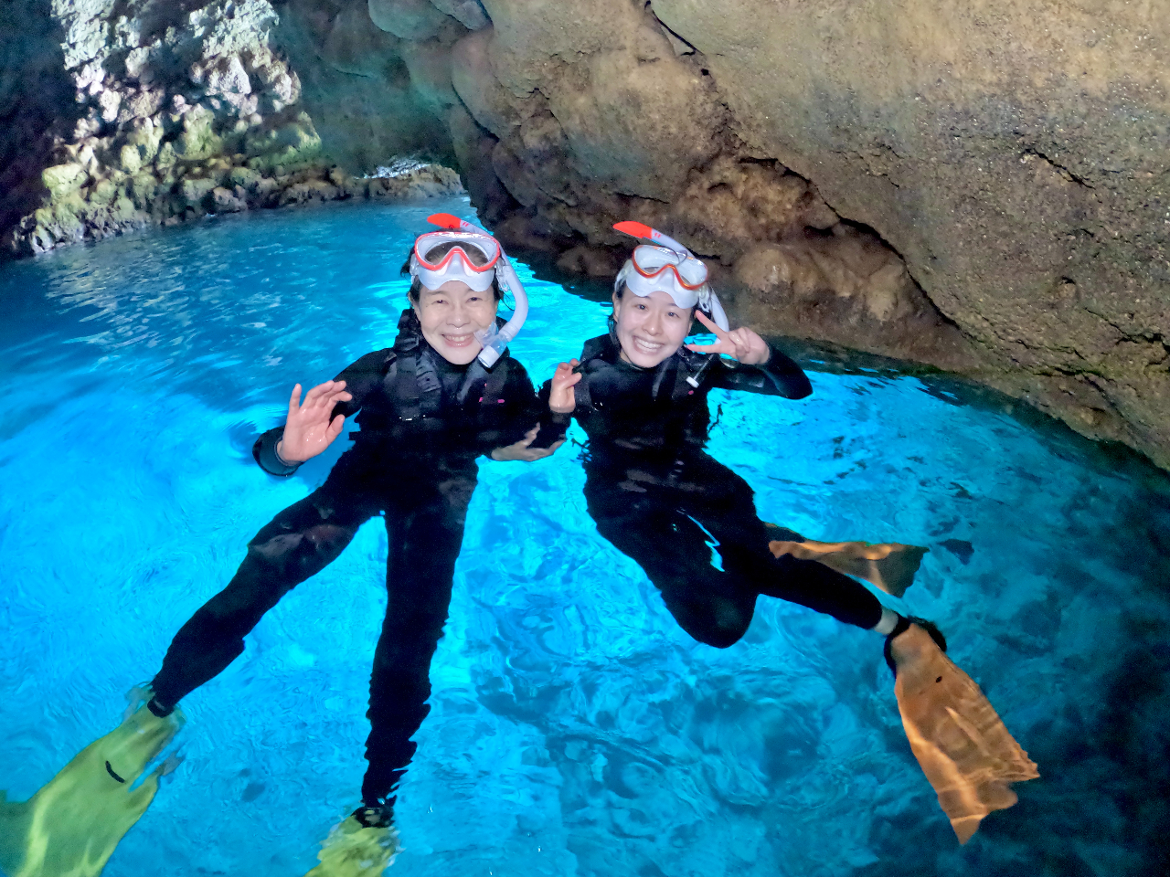 【青の洞窟1組貸切体シュノーケル】口コミ満足度No1☆餌やり・写真&動画撮り放題・送迎 オプション全部こみこみ♪グループ割引あり!カップル、ファミリー、女性にもオススメ!!