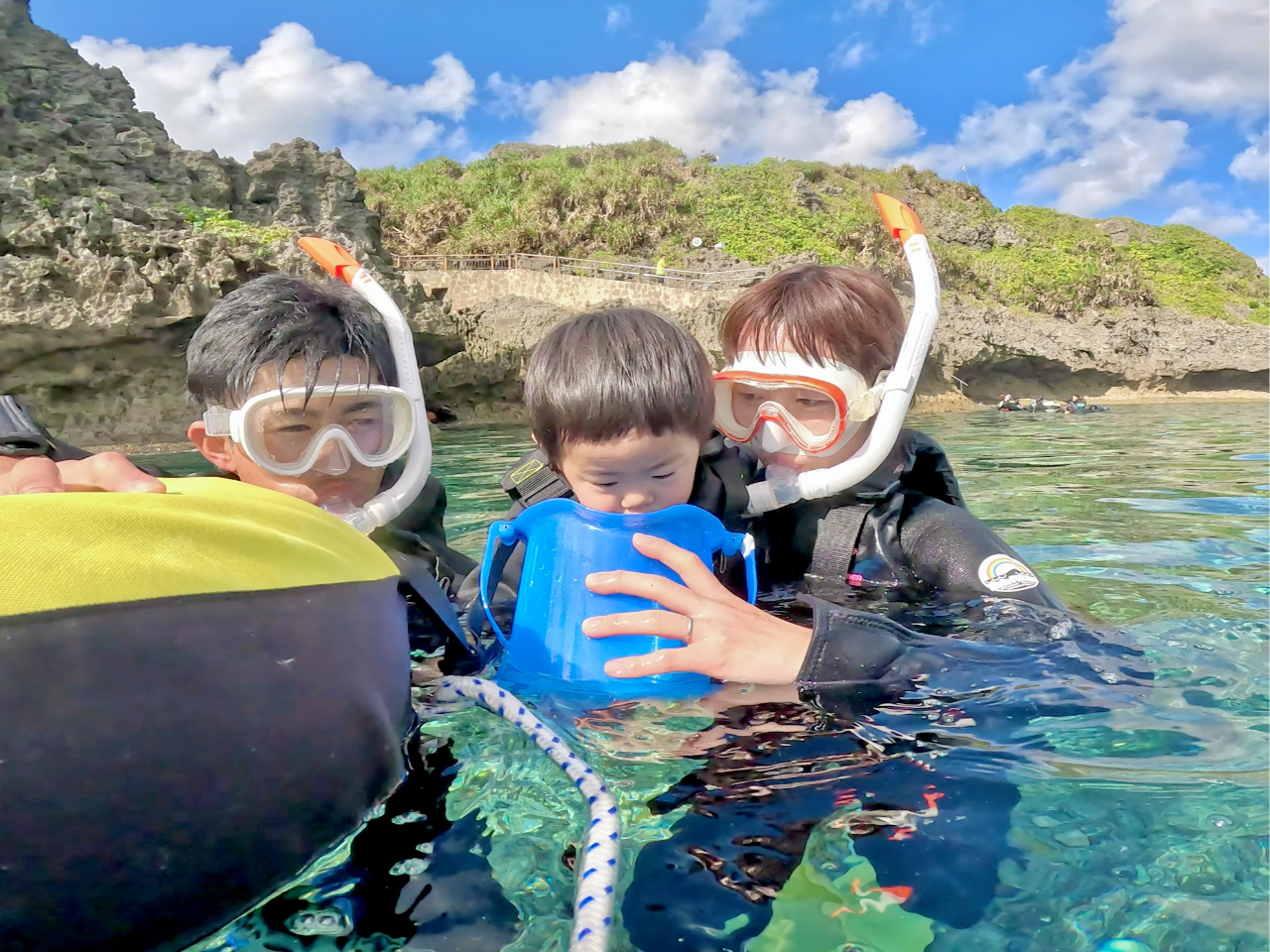 【青の洞窟1組貸切体シュノーケル】口コミ満足度No1☆餌やり・写真&動画撮り放題・送迎 オプション全部こみこみ♪グループ割引あり!カップル、ファミリー、女性にもオススメ!!
