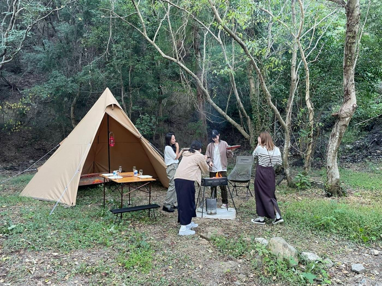 緑が広がるエリアです。 ウェーバーコンロの貸し出しもございます。