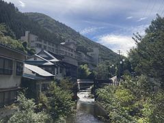 風呂場が掛け流しでよかった。写真ほど簾の向こうが透けて見えないので、下の方の半透明の塀の板が透明で川がよく見えたら最高だった。