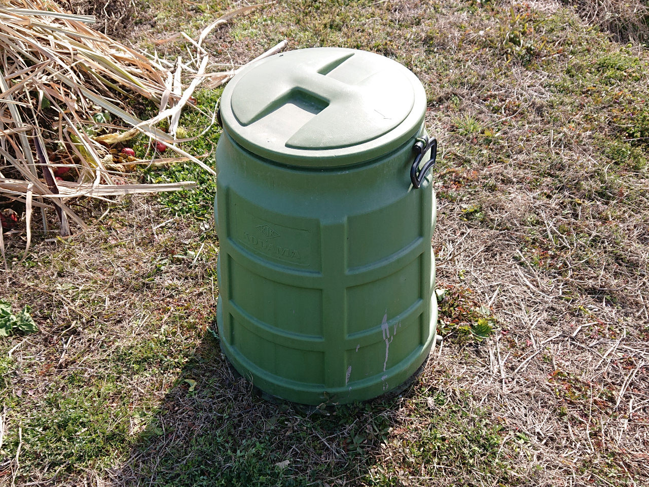 家から生ごみなど持ってきたらこの中に入れてください。有機肥料として後々畑に入れます。