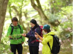 グリーンシャワーの降り注ぐブナの原生林の中をゆったりトレッキング。
