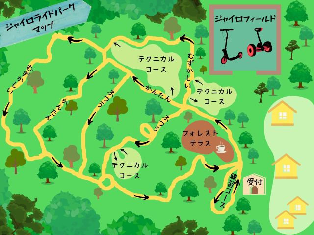 森の中で爽快ジャイロライドを楽しもう〜!5歳くらいから、Max87歳の方まで乗れました