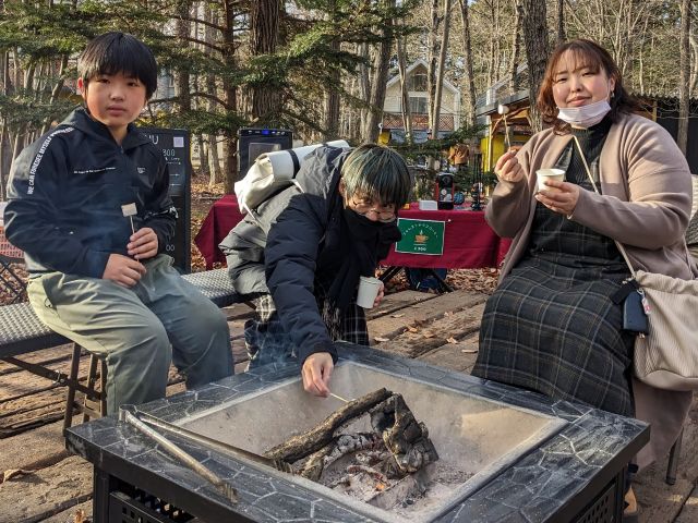 ・フォレストテラスでたき火で焼く「焼きマシュマロ」が無料で食べられます♪