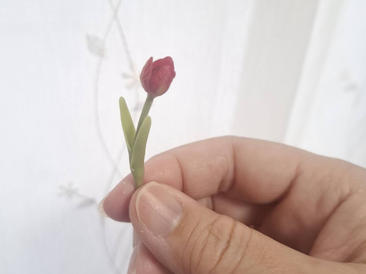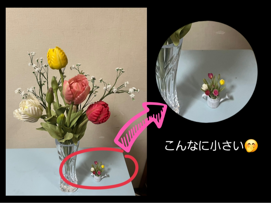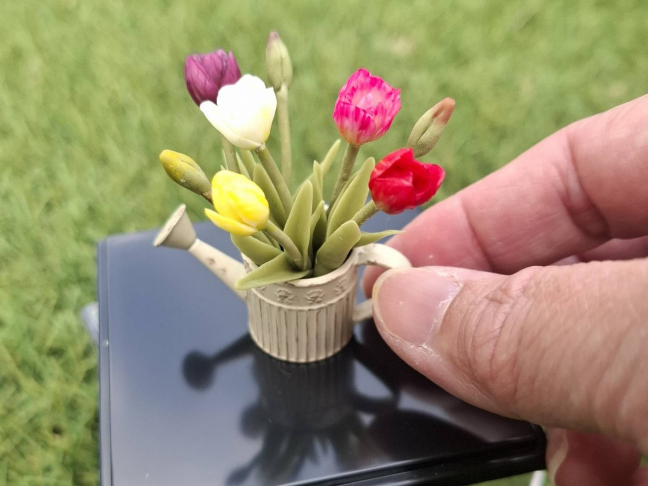 指先サイズのチューリップを机に飾って癒しの空間へ