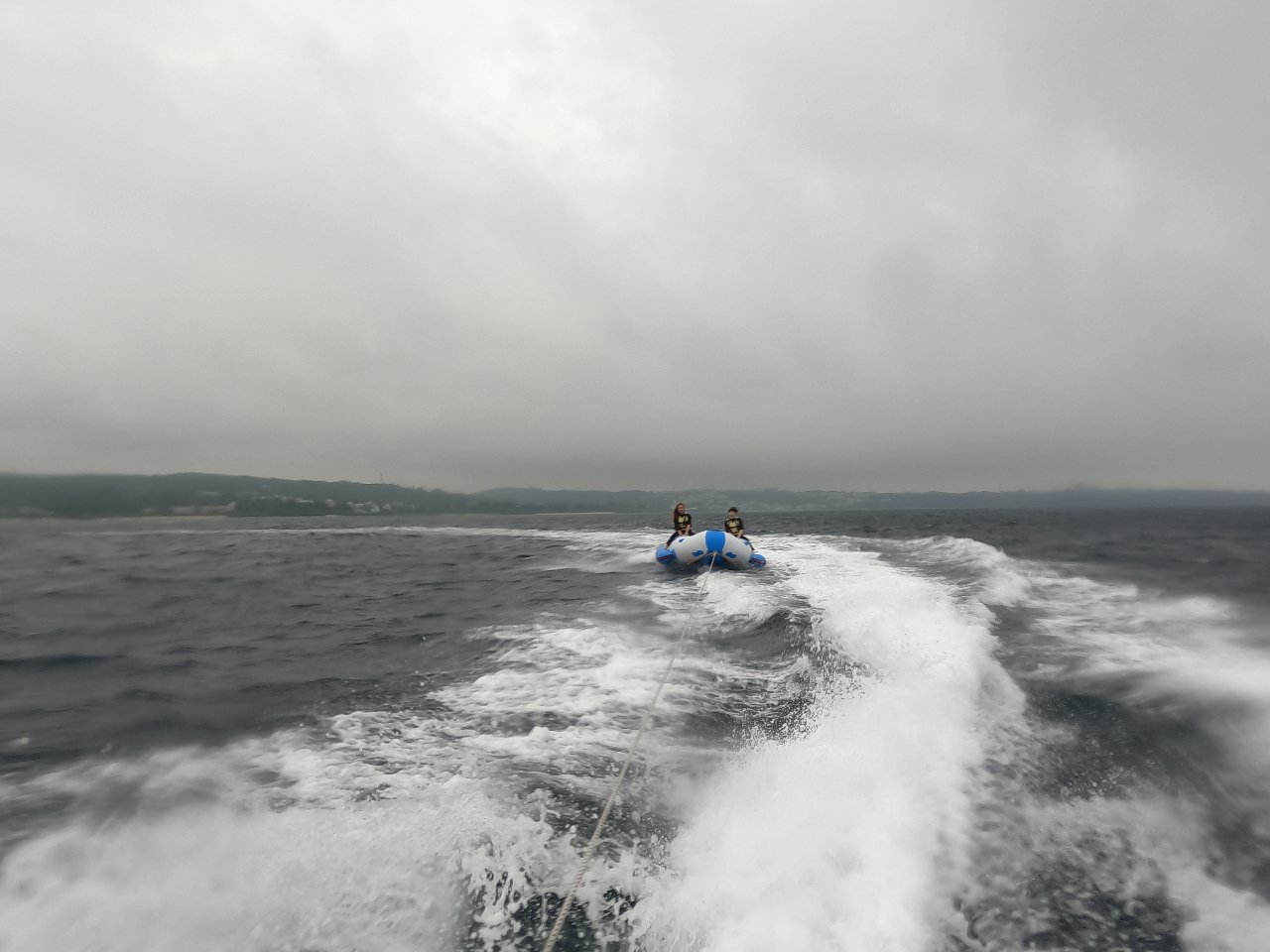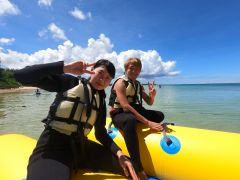 小さなお子様から女性だけのグループ、家族連れでも安心して体験できます。バナナボート・チュービング