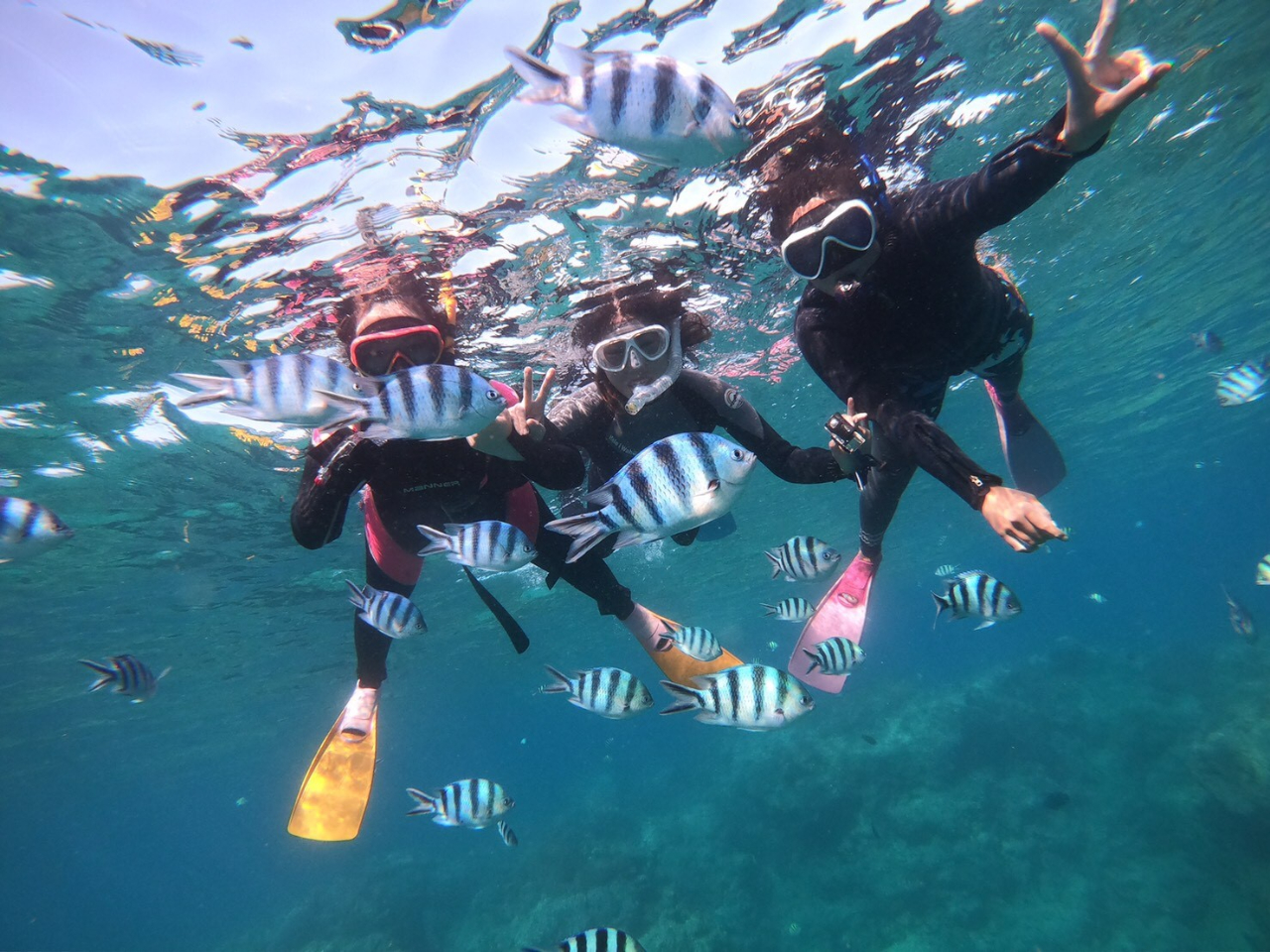 (青の洞窟シュノーケル+バナナボート)エサあげ付。写真プレゼント