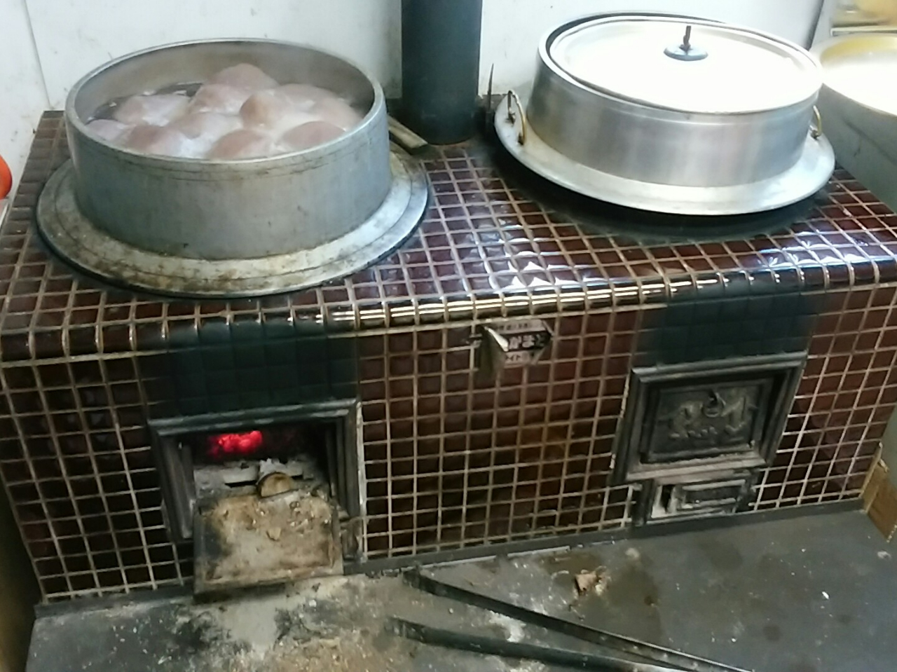 丸めた後は、昔ながらの釜で浮き上がるまで茹でます。