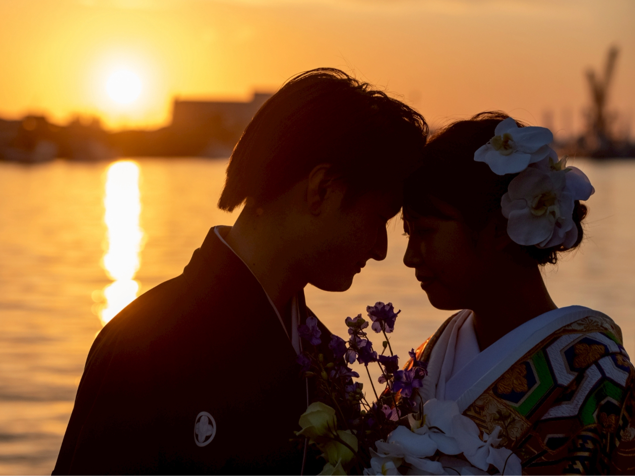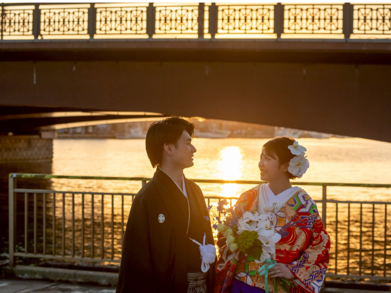 【ウェディングフォト】"釧路"の夕日や夜の幣舞橋で和の装いで写真を残す!!
