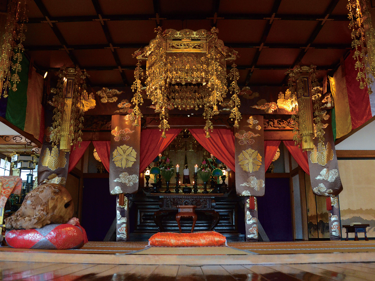 お寺の本堂の中で、非日常的な体験ができます。