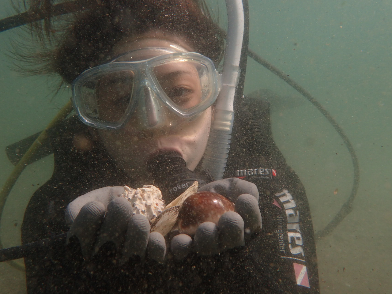 ダイビング機材を装備して,いよいよ海へ。様々な生物との出会いが待っています。