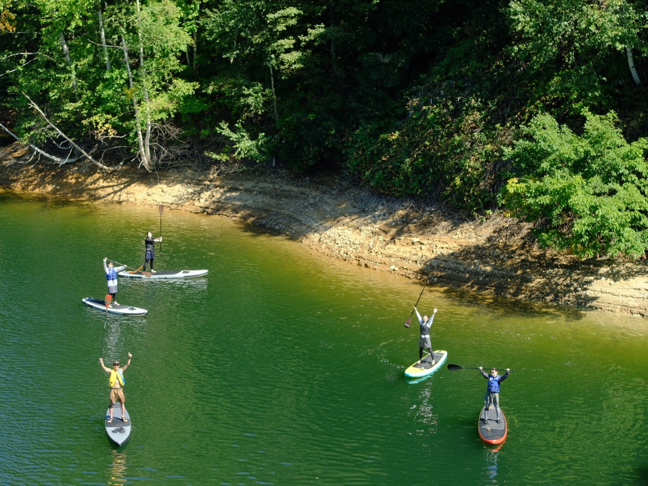 今回初めてSUPを体験しました。当日予約も可能で、15時開始の回にしたのですが、気温もちょうどよく景色も綺麗で、とても気持ちよかったです!ボードに立てるかどうかも少し不安でしたが、段階を踏んで教えてくださったおかげですぐに立つことができました。川の違いも体験でき面白かったです。