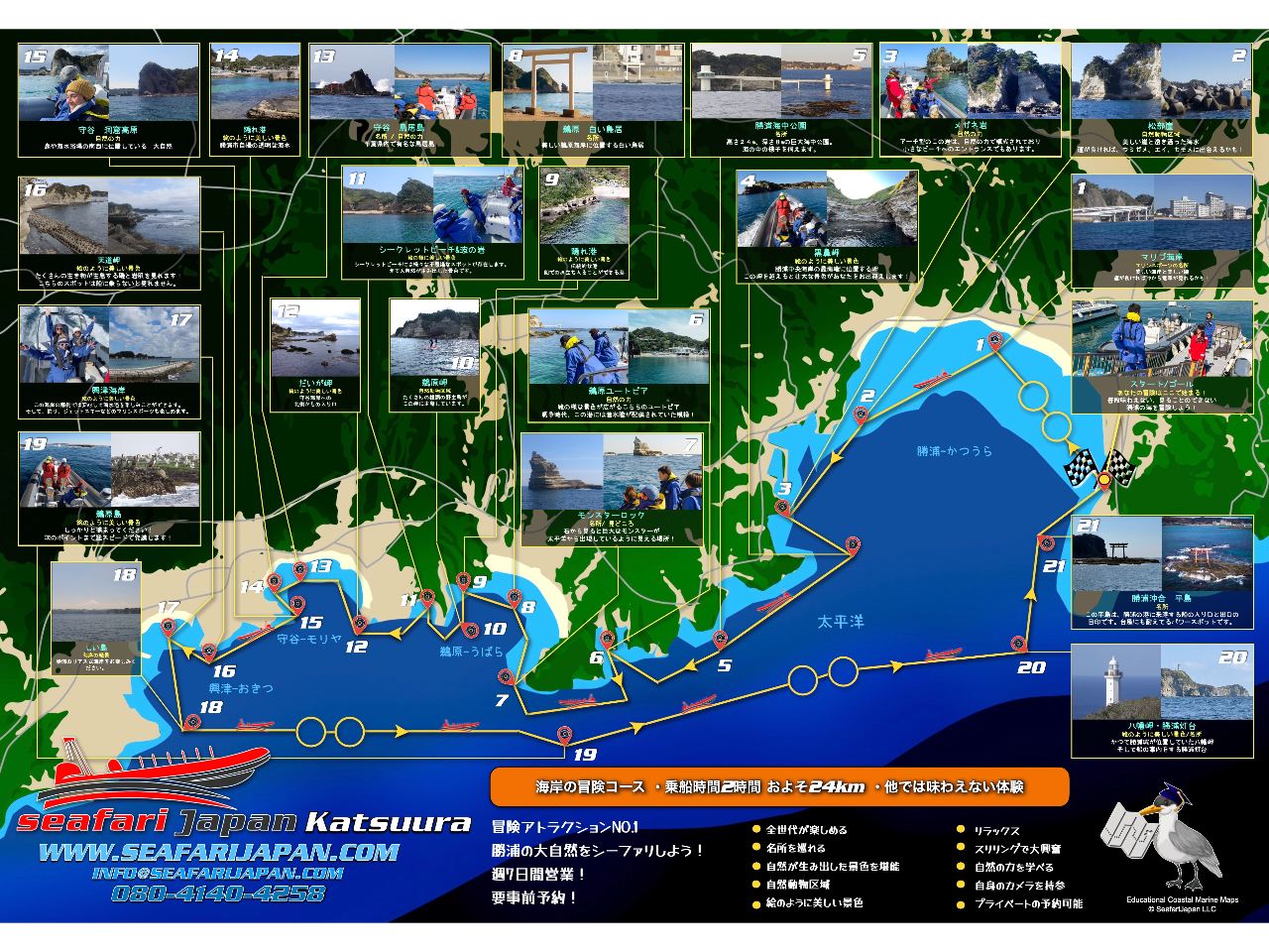 こちらのツアーは、壮大な勝浦太平洋岸線を航行し刺激的、そしてユニークなツアーを年齢や国籍に関係なく、お客様にご提供いたします。