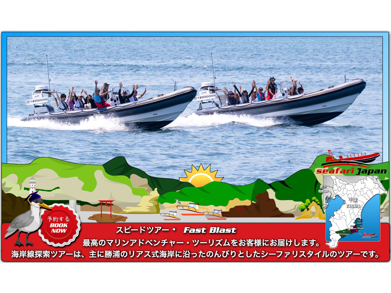 ★【千葉・勝浦】SPEED BOAT TOUR スピードツアー 乗船時間約45分 《カップル・女性同士・集団ファミリーにおすすめ》 2 ボート最大 14 名まで/1日84名まで可能