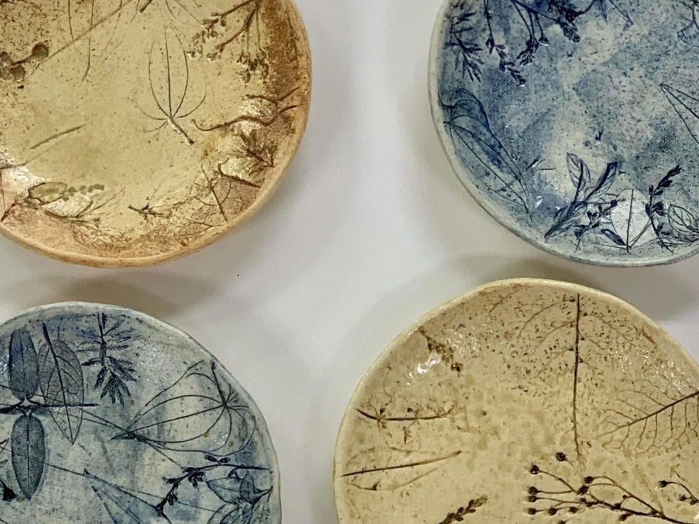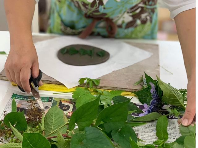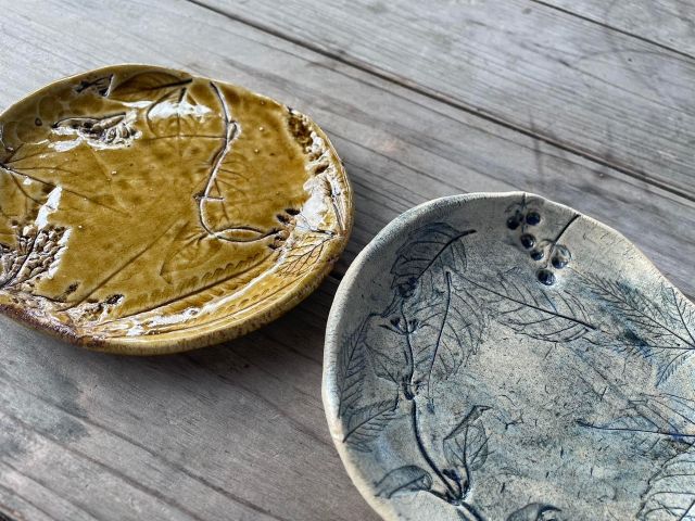【丸森・陶芸体験】お皿に植物をスタンプして模様を作るてびねりの体験!オリジナルの素敵な器が作れます♪