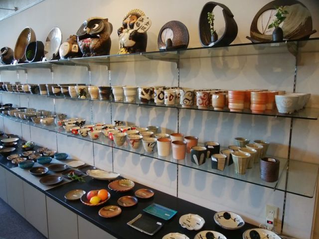 お好みに合うギャラリー・窯元2ヶ所程度見学・買い物→緋色の商店街(お土産)でお買い物→hioliで解散