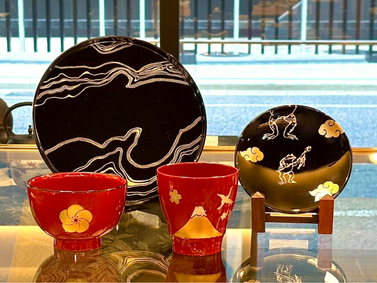 店内 漆器のコーナーです。 季節に合わせて、おすすめの商品を展示しております。