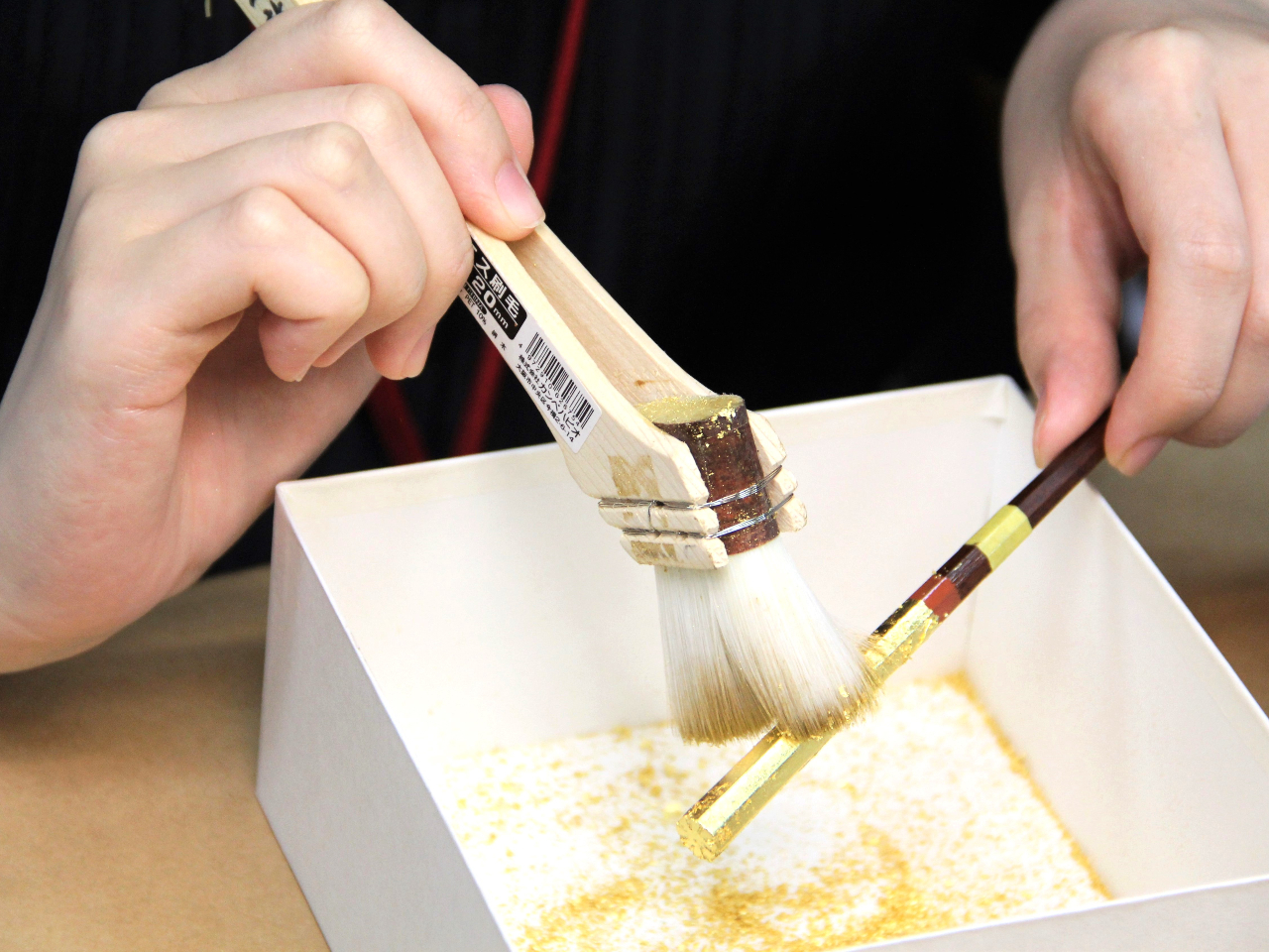 金箔で箸や小箱などにオリジナルの作品を作ります