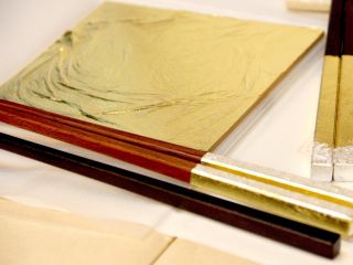 金箔で箸や小箱などにオリジナルの作品を作ります