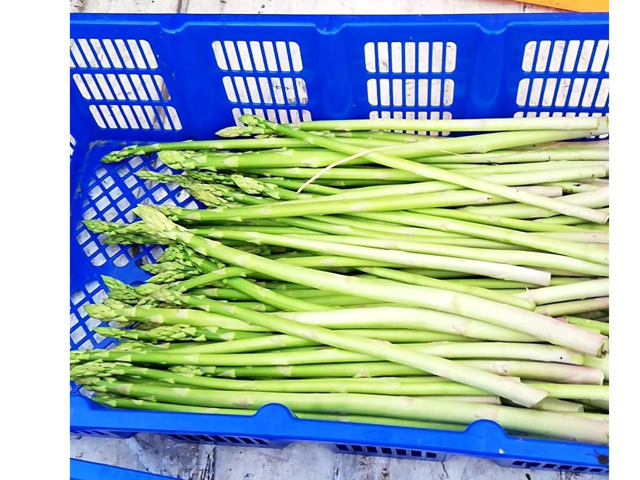 太いのは親指以上あります。すきなアスパラをすきなだけ選んで刈り取ってください。