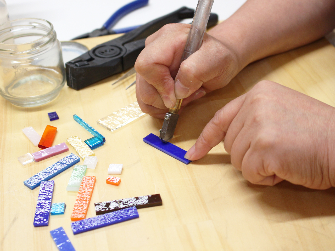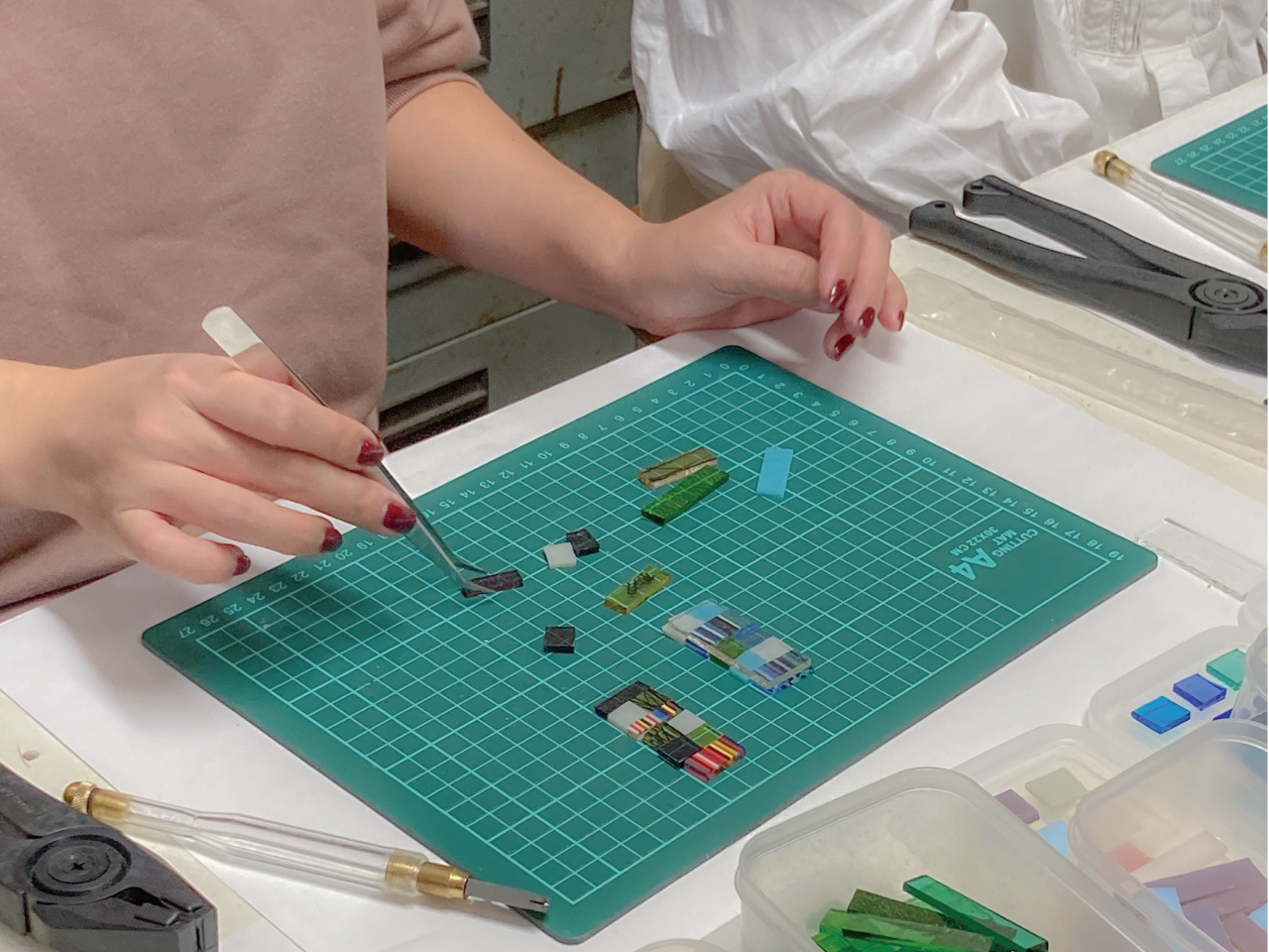 3.ご用意したガラスの中からお好きな素材を選んでカットします。
