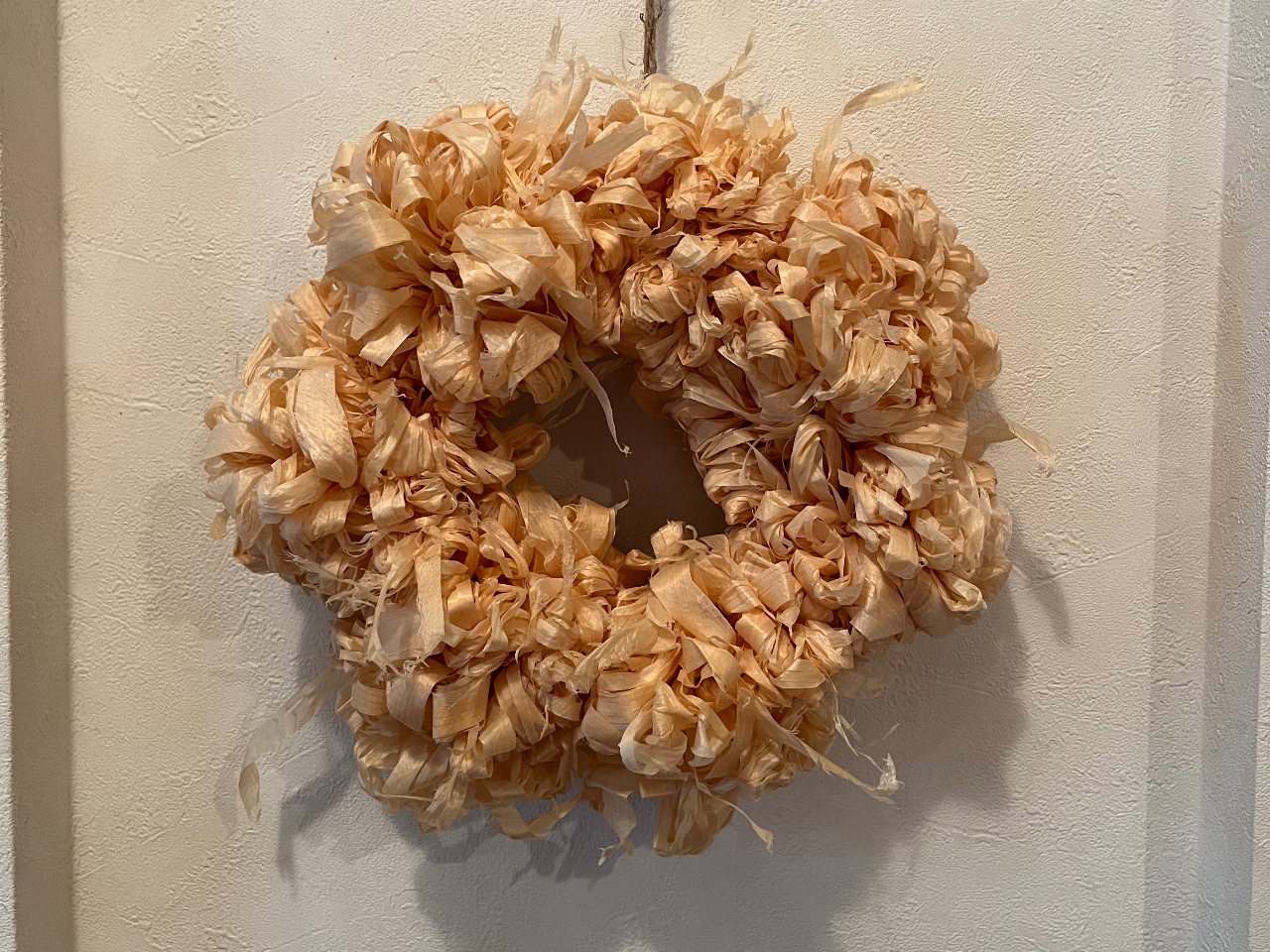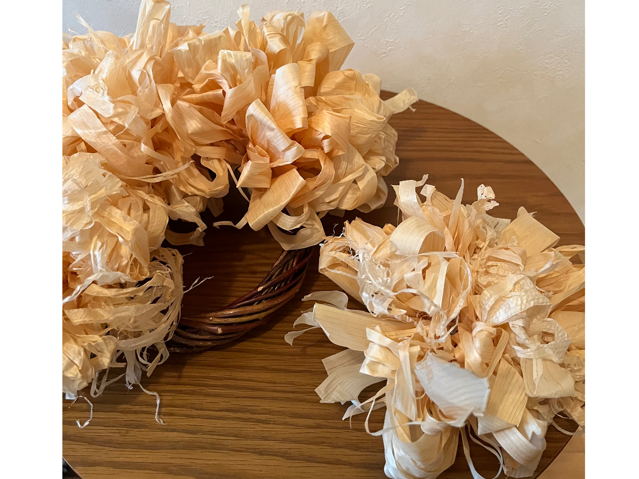 地元松本市の建築店さんのカンナ材(かんなくずと呼ばれるもの)を使ったリースづくり