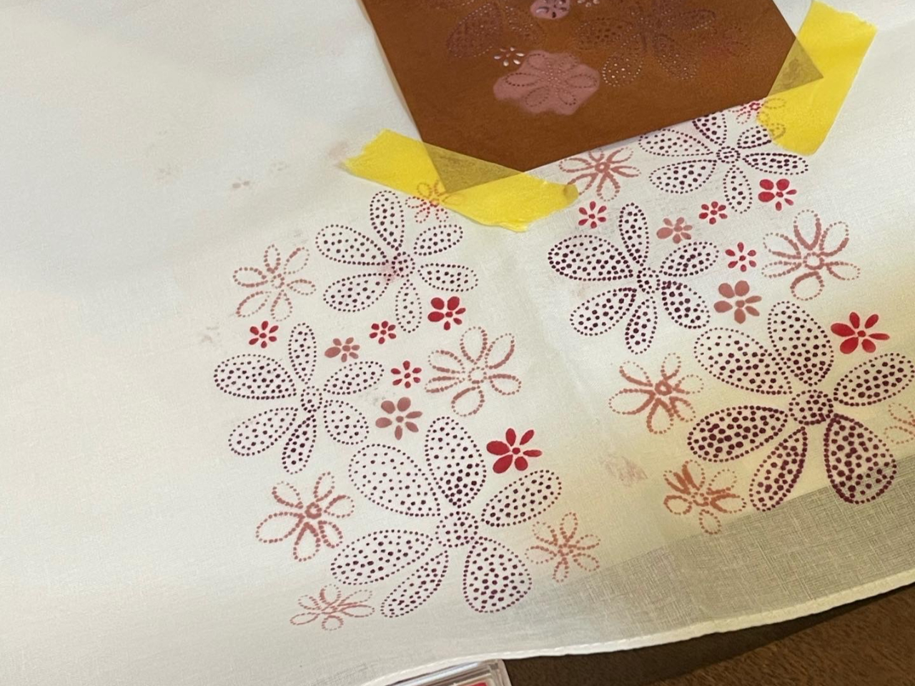 同じ図柄を使って、4箇所に。時間内でしたら、同じ型紙で何回も染められます。