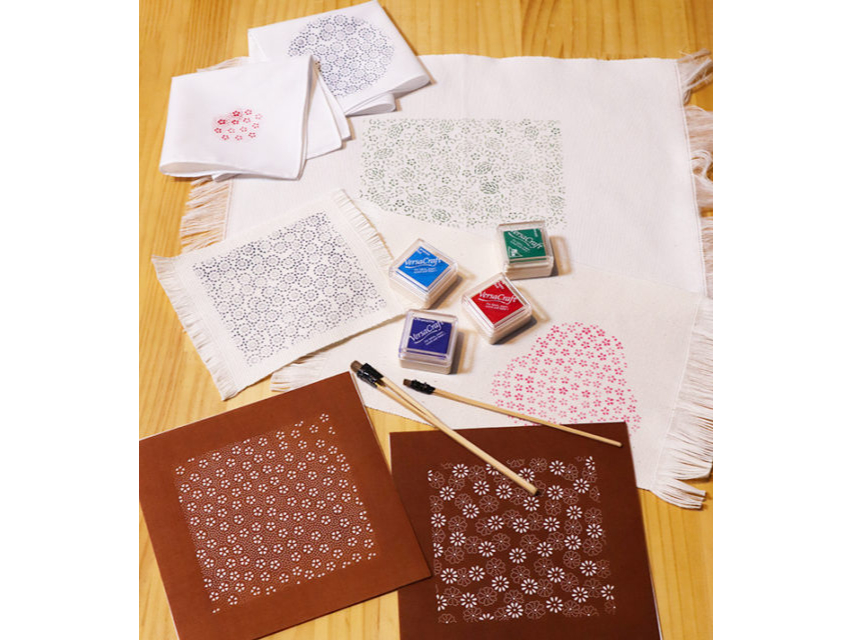 千年以上にわたり三重県鈴鹿市で技術が継承されてきた伝統工芸「伊勢型紙」を使って、ポストカードに型染めをします。