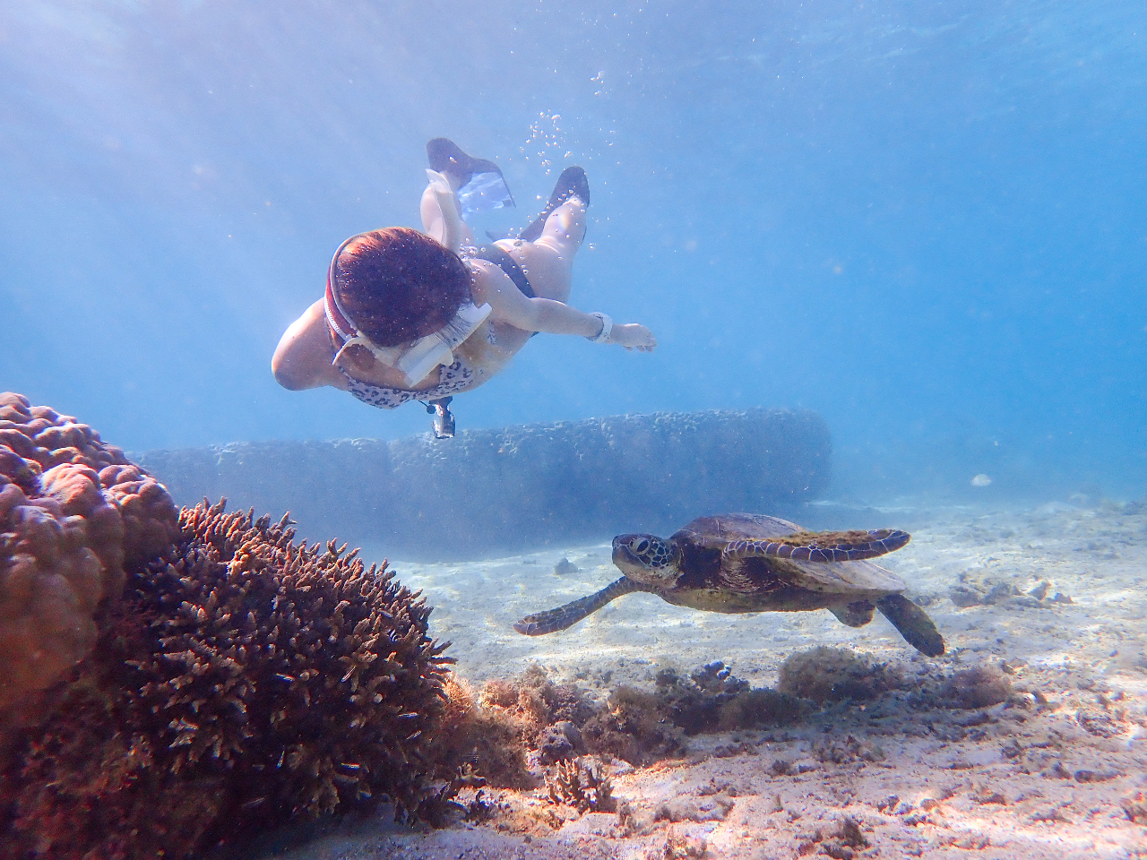 ●ウミガメが高確率で出逢えるポイントやカラフルな熱帯魚やサンゴ礁をお楽しみ頂けるシュノーケル