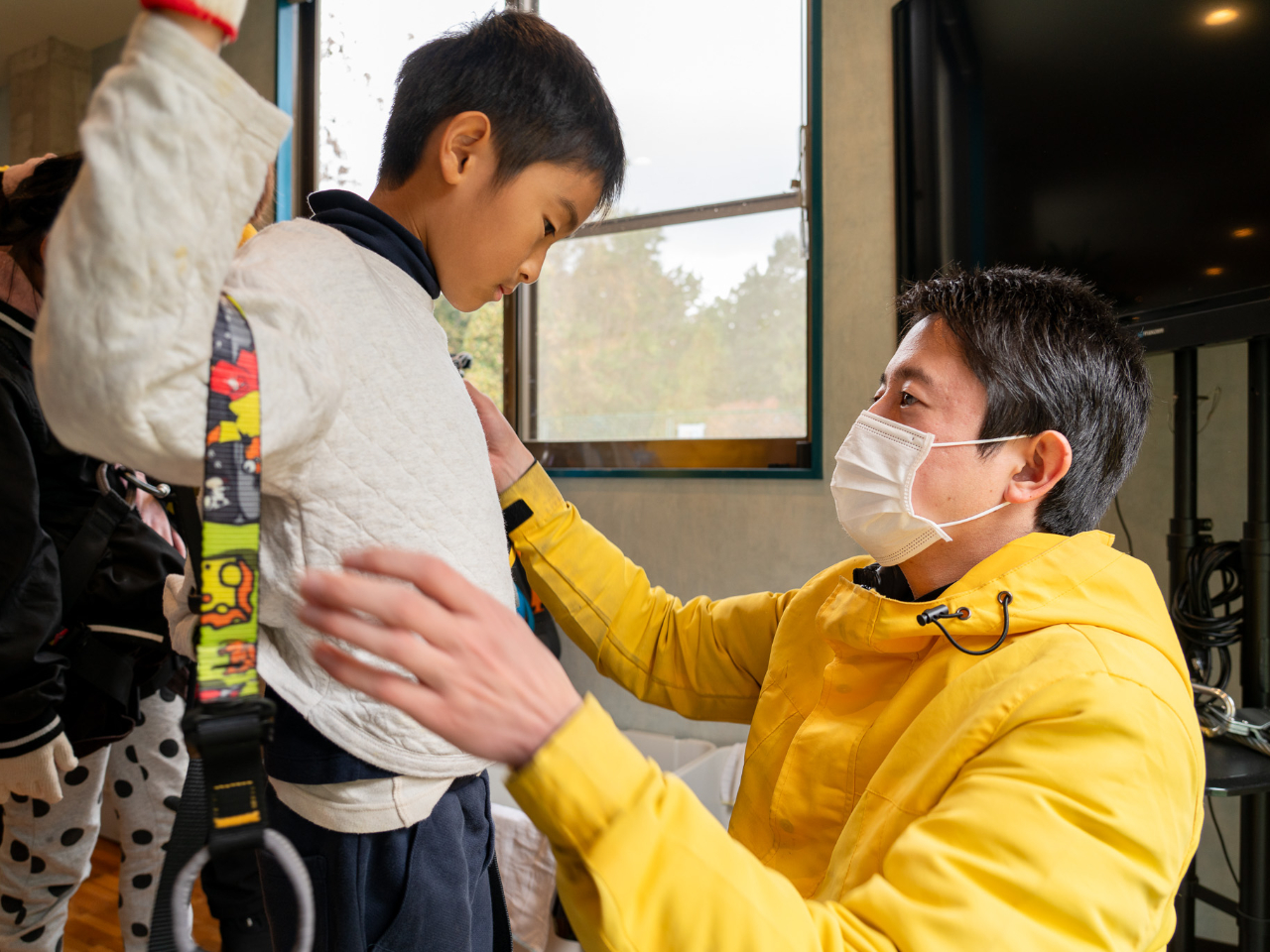 誓約書にご記入をいただいた後、お着替えや安全装具の装着などのご案内をいたします。集合時間に遅れると体験できなくなる場合があります。遅れる場合は必ずご連絡をお願いします。
