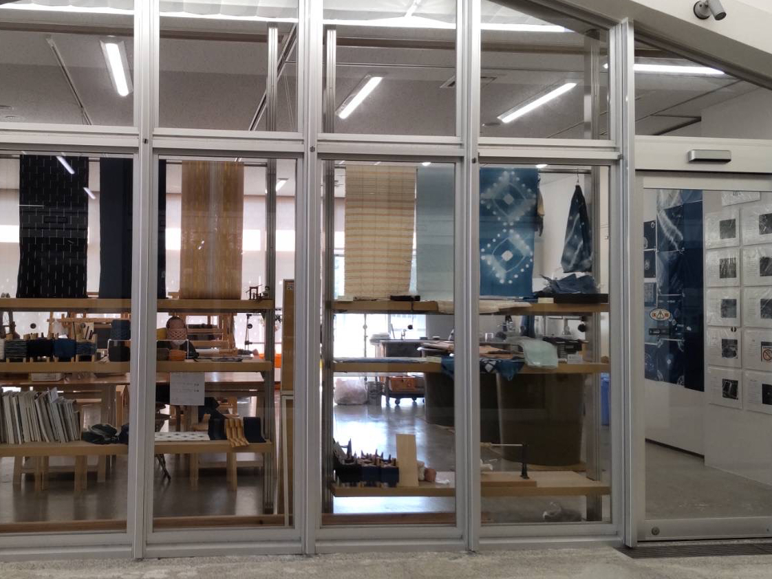 • 工房外観です。ウインドウには染織作品と商品を展示しております。