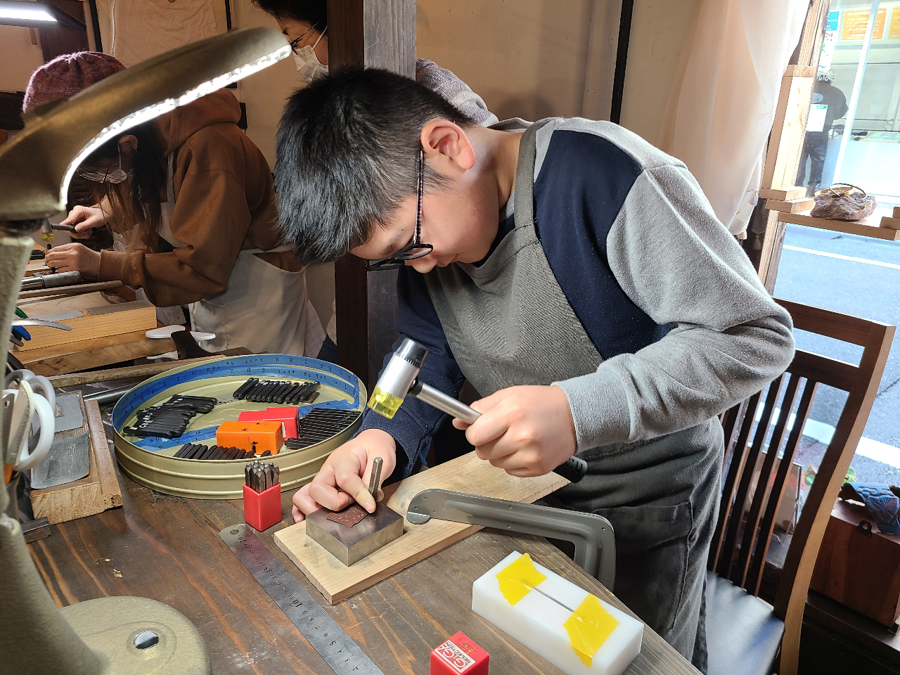 〇ピカピカ光る鏡面仕上げ、槌目(つちめ)という古来からある表面仕上げ、指輪の制作を通して彫金に触れ、彫金の世界、金工の楽しさを実感して頂ける空間です。